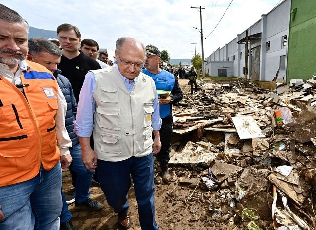 O presidente da República em exercício, Geraldo Alckmin, e uma comitiva de ministros foram ao Rio Grande do Sul neste domingo (10), e percorreram a região do Vale do Taquari, a mais afetada pelas chuvas e inundações.