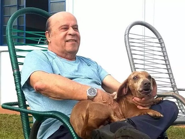 Jornalista Antonio João Hugo Rodrigues, o AJ, com o fiel companheiro, Fiote (Foto: Facebook)