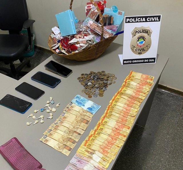 Ao chegarem no local, os investigadores perceberam que se tratava de um ponto de venda de drogas, sendo que ao entrarem na casa, localizaram grande parte dos objetos furtados, assim como vários papelotes de substância análoga à pasta base de cocaína, além de grande quantia em dinheiro trocado.