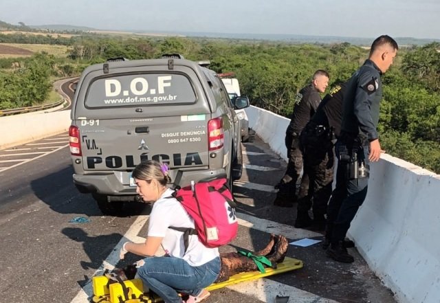 Policiais do DOF socorrem vítima de acidente na Serra de Maracaju
