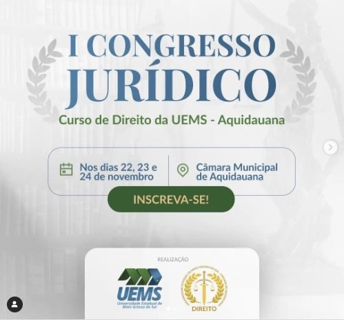 É com grande entusiasmo que anunciamos as inscrições para o 1º Congresso Jurídico do Curso de Direito da UEMS Aquidauana. Não perca a oportunidade de aprimorar seus conhecimentos e se conectar com os melhores profissionais da área.