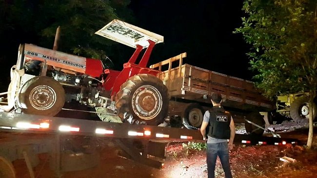 Os policiais chegaram até o local após receber informações de que um trator Massey Fergunson 265 e uma carreta agrícola, furtados no município de Jateí em abril passado, estariam no distrito de Vila Vargas. No local, os policiais civis localizaram um trator da marca CBT, com registro de furto em Caarapó e uma carreta agrícola.