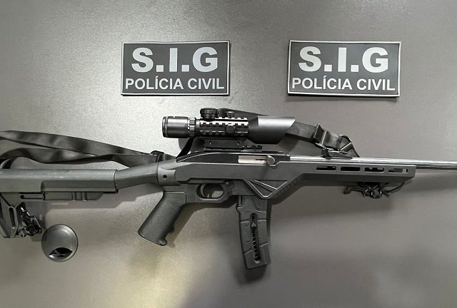 A Polícia Civil, por intermédio da Delegacia de Novo Horizonte do Sul-MS, com apoio da Delegacia de Ivinhema-MS, deu cumprimento a um mandado de busca e apreensão e apreendeu um rifle, calibre.22, que foi utilizada para ferir um cachorro no dia 16 de agosto deste ano, na área urbana de Novo Horizonte.