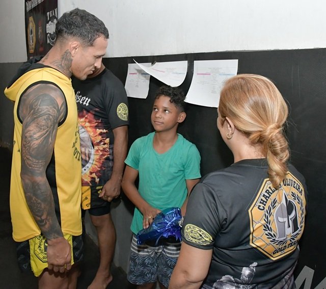 O super campeão e recordista de finalizações do MMA, Charles do Bronxs que já está em Aquidauana para participar da 2ª edição do “Coliseu Combat Aquidauana”, realizou o sonho do garoto Tales Felipe Silva Santos, 13 anos.
