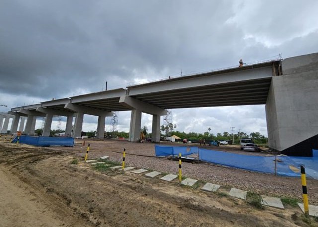 Conforme relatado pelos engenheiros da obra durante a visita, a ponte está com 40% concluída e está prevista para ficar pronta no final de 2025.