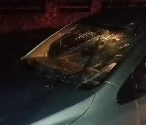 Para-brisa destruído após acidente em Corumbá. (Foto: Divulgação)