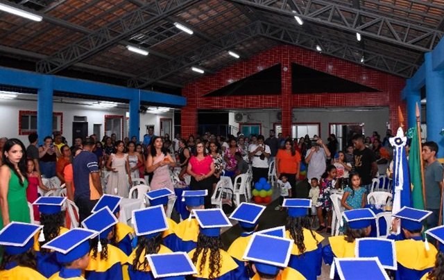 As famílias dos alunos do Centro Municipal de Educação Infantil (CMEI) Antônio de Arruda Sampaio, na noite de quinta-feira (07) para comemorar e aplaudir os pequenos formandos da pré-escola.