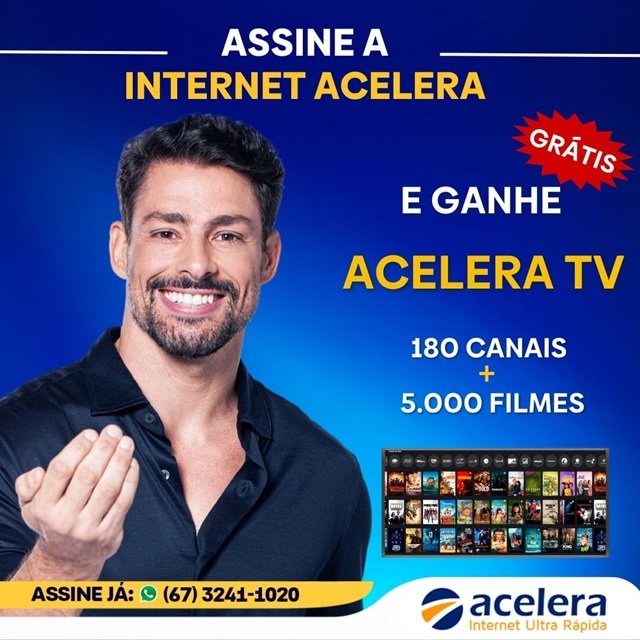 O acesso é exclusivo para clientes da Acelera Internet Ultra Rápida, que vão descobrir o futuro da diversão digital com a Acelera TV e com a qualidade e velocidade premiadas. “São 5 anos liderando com fibra ótica a região de Aquidauana, Anastácio e Miranda”.