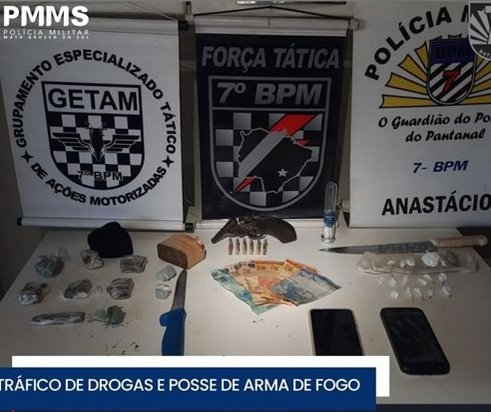 Policia Militar aprende drogas e arma de fogo em bairro de Anastácio
