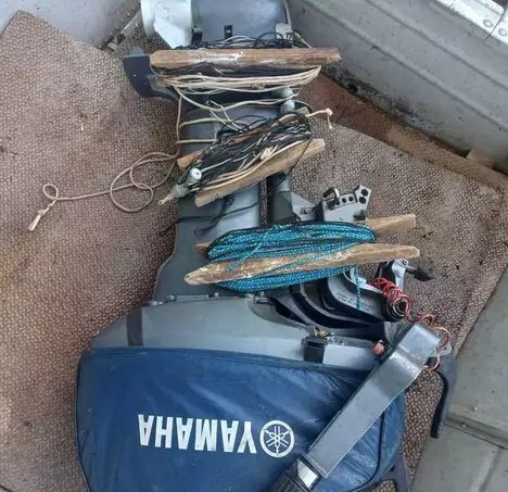 Ao realizar uma vistoria no interior da embarcação, foram encontrados 13 anzóis de galhos com corda e chumbadas, além de duas iscas vivas, sendo um exemplar de bagre e outro de lambari.