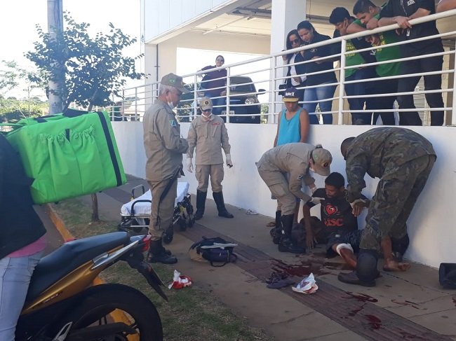Equipe do Corpo de Bombeiros foi acionada. A vítima foi atingida na veia femoral e perdeu muito sangue.