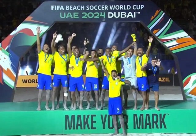 O Brasil é hexacampeão mundial de futebol de areia. O título, com uma campanha de 100% de aproveitamento, foi confirmado no início da tarde deste domingo (25) com a vitória por 6 a 4 sobre a Itália, em Dubai, nos Emirados Árabes.