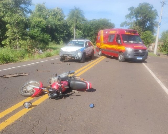 Acidente na àrea urbana da MS 450 em Aquidauana envolve moto e carro