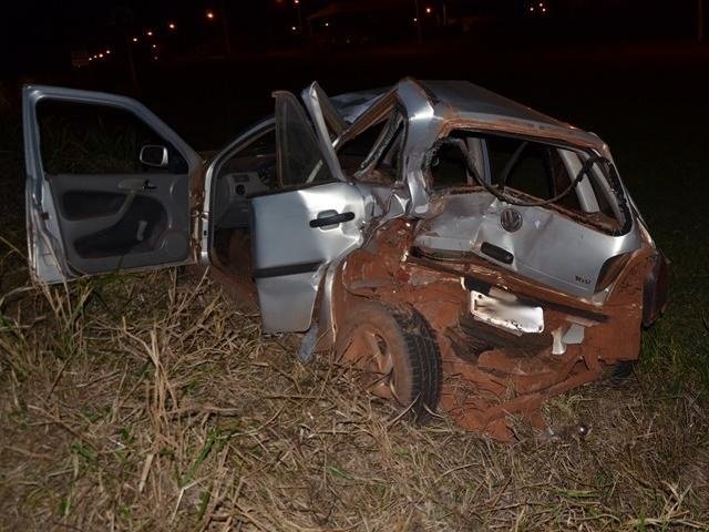 Colisão na MS-276 deixa carro destruído e duas pessoas feridas