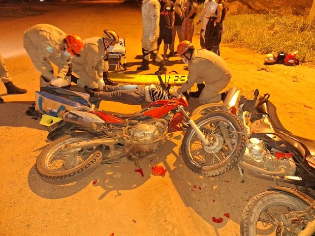No local ocorreu uma colisão envolvendo duas motocicletas.