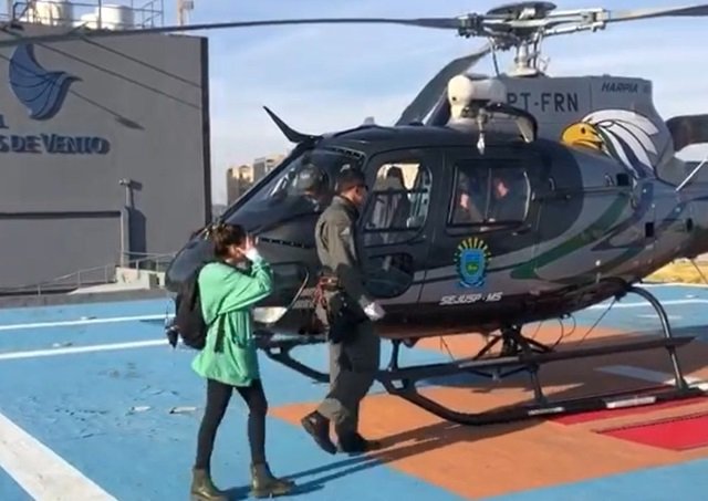 O helicóptero esquilo, prefixo PT-FRN, da Sejusp (Secretaria de Justiça e Segurança Pública de Mato Grosso do Sul) decolou para o Rio Grande do Sul no último sábado (4), equipado com um guincho elétrico para o resgate de pessoas em áreas isoladas e de difícil acesso.