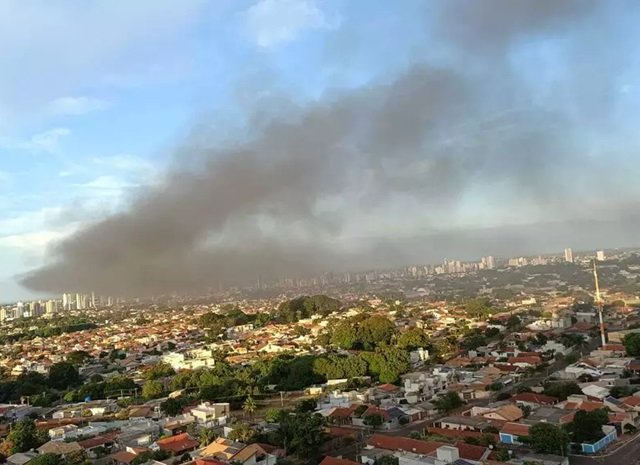 Empresa de reciclagem de pneus localizada na região do Bairro Coronel Antonino, região norte Campo Grande, está pegando fogo na manhã desta quinta-feira. A fumaça preta pode ser vista de longe.