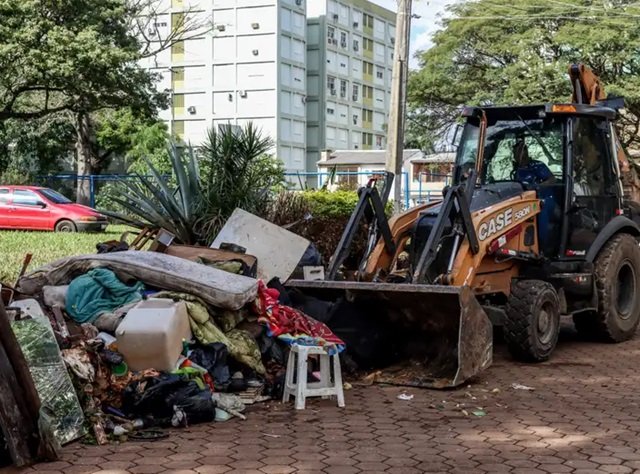 Esse número vai aumentar muito conforme as ruas forem secando. Nesta primeira etapa, estão sendo utilizados 300 veículos pesados, incluindo retroescavadeiras, pás carregadeiras e caminhões basculantes.