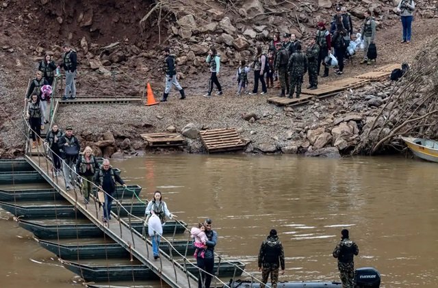 O Exército vai refazer as passarelas flutuantes para pedestres que foram instaladas em rios do Vale do Taquari, no Rio Grande do Sul. O estado enfrenta a maior tragédia climática de sua história, atingido por chuvas e enchentes desde o fim do mês de abril.