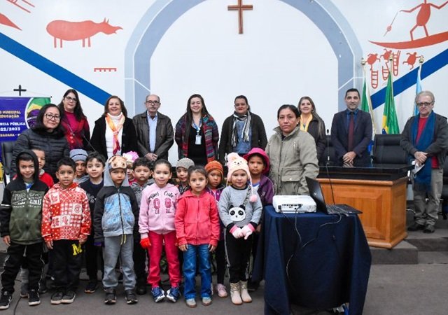 A solenidade de abertura contou com a participação especial dos alunos do CMEI Marisa Scaff, que entoaram os Hinos – Nacional e Municipal e, também, dos alunos da Educação Infantil da Escola Municipal Polo Lutuma Dias, da Aldeia Limão Verde, que cantaram em língua terena.