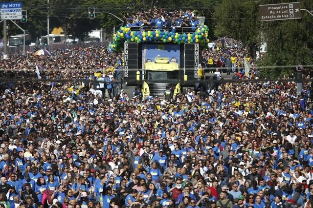 Acompanhado do apóstolo Estevam Hernandes, da Igreja Renascer em Cristo, o prefeito de São Paulo, Ricardo Nunes discursou de um carro de som. Dizendo estar feliz e emocionado, Nunes pediu orações pelas pessoas afetadas pela catástrofe climática no Rio Grande do Sul. “Que a gente possa colocar os nossos irmãos do Rio Grande do Sul em nossas orações, para que eles tenham de todos nós uma energia muito positiva”, conclamou o prefeito, que estava junto com a esposa, Regina.
