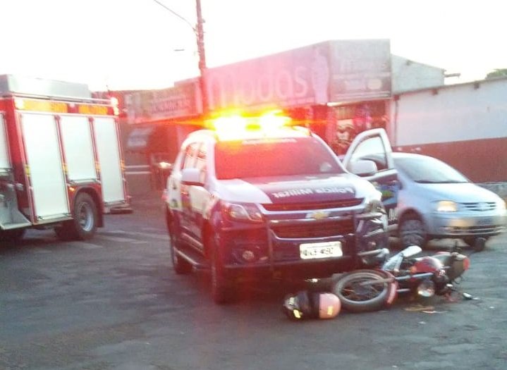 Acidente em cruzamento de Aquidauana envolve viatura da PM e moto