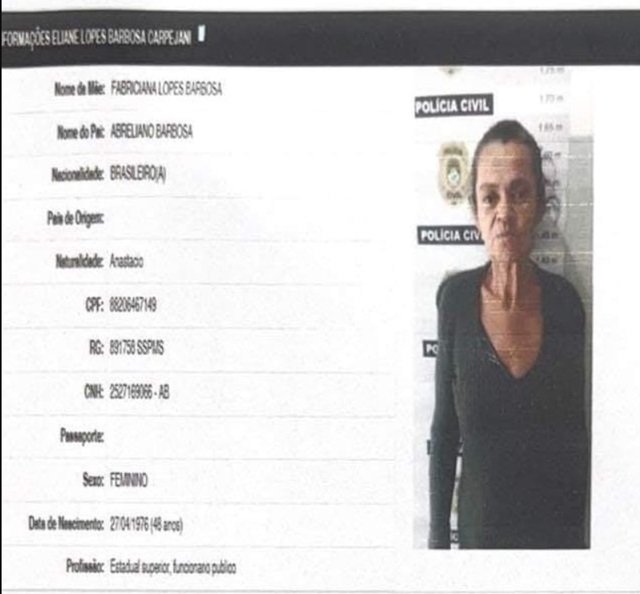 Na realidade outra mulher, que seria irmã da esposa do parlamentar se identificou usando o nome de Eliane Lopes Barbosa Carpejani, no momento da prisão, mas na realidade seu nome é Marili Lopes Barbosa.