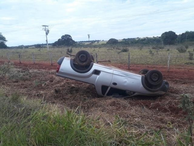 Dois homens foram levados para a Santa Casa após capotagem na MS-080, saída de Campo Grande para Rochedo, no começo da manhã de hoje. O acidente ocorreu na altura do Córrego Ceroula, a aproximadamente 20 quilômetros do Detran-MS (Departamento Estadual de Trânsito).