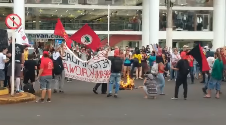Na imagem aparecem pessoas em frente a loja segurando bandeiras e faixas. Os protestantes fizeram uma fogueira no estacionamento. Hang não poupou críticas ao grupo, os chamando de baderneiros. “Malandragem hoje na nossa loja de Dourados, MS. Coitados, não gostam de trabalhar, são fracassados, invejosos e derrotados”.