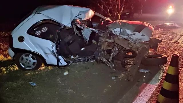 Homem de 30 anos e um menino de 5 anos que também estavam no veículo ficaram feridos. O adulto sofreu fratura no braço direito e o garoto teve apenas escoriações.