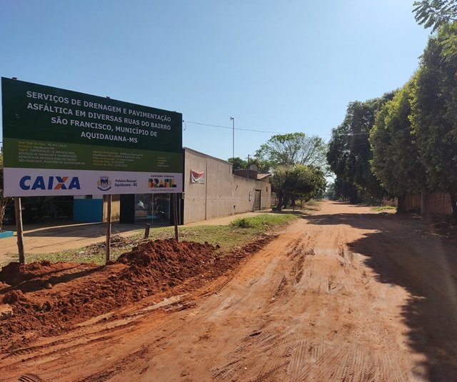 A Prefeitura de Aquidauana iniciará trabalhos para obra de drenagem e pavimentação de mais ruas no bairro São Francisco. Nesse bairro, a prefeitura já investiu no ano passado mais de R$ 2 milhões transformando a região levando asfalto e qualidade de vida.