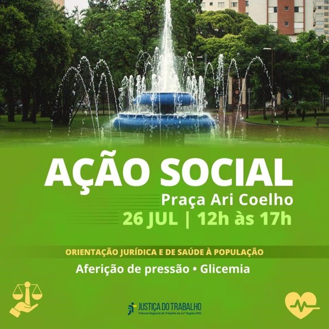 A população de Campo Grande poderá realizar serviços como aferição de pressão e glicemia e obter orientações jurídicas e de saúde, tudo de graça. A ação social será realizada na próxima sexta-feira, dia 26 de julho, das 12h às 17h, na Praça Ari Coelho, no centro da cidade.