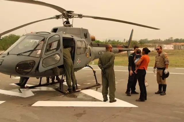 A aeronave do 1º Esquadrão de Helicópteros de Emprego Geral do Oeste (EsqdHU-61) foi quem fez o resgate da criança, que foi acompanhada pela mãe ao hospital.