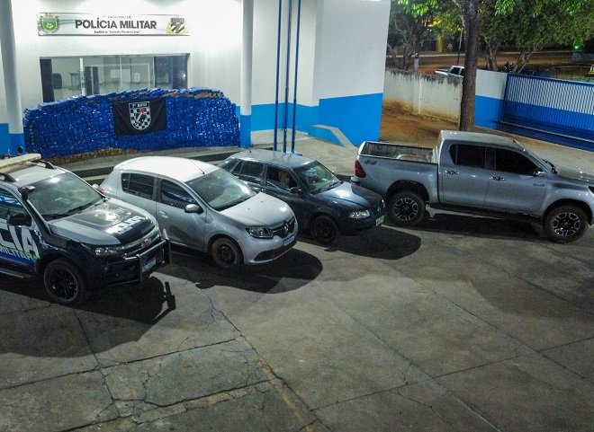 Os dois últimos, encontravam-se abertos e com as chaves no contato (inclusive os porta-malas levantados, dando indícios que estavam sendo carregados com entorpecentes), no entanto o primeiro encontrava-se trancado, sendo localizado a chave em uma pochete ao lado da caminhonete.