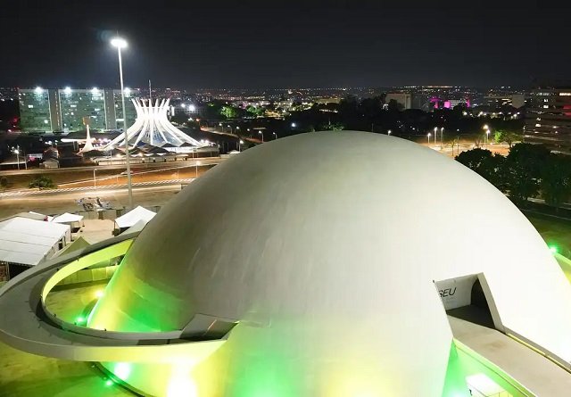 Brasília ganhou uma iluminação verde e amarela neste domingo (13), em pontos icônicos da cidade, em referência à seleção brasileira, que volta a jogar na capital após hiato de cinco anos.