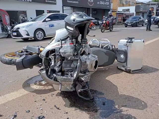 Câmera de segurança de um comércio na região flagrou o exato momento da batida. O homem pilotando a motocicleta de luxo, e alta cilindrada, não consegue frear e bate no veículo. Com o impacto, a vítima chega a dar rodopios no ar antes de cair ao chão.