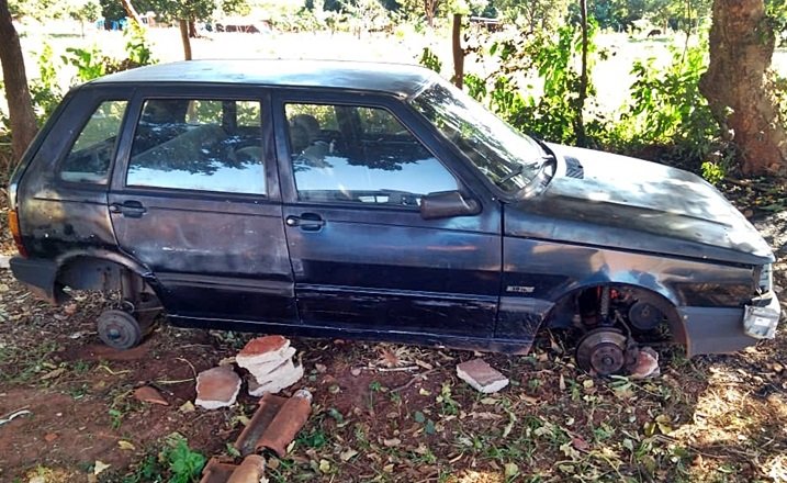 Na tarde de ontem, segunda-feira (24), uma equipe da Força Tática do 10º Batalhão de Polícia Militar flagrou o momento em que uma dupla efetuava o desmanche de um veículo Fiat Uno, de cor azul, ano 1996, que havia sido furtado no dia anterior.