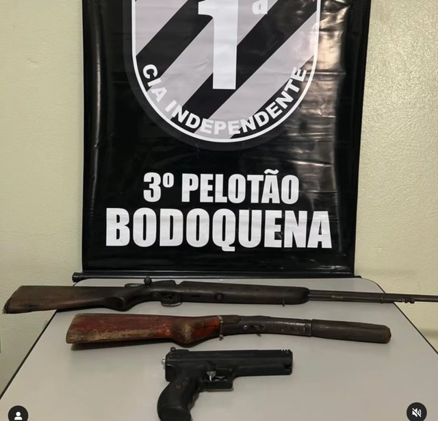 Com o apoio da liderança local, as equipes localizaram a residência do indivíduo. Após resistência inicial, foi necessária uma entrada tática sendo o suspeito encontrado, e próximo a ele havia dois armamentos longos e um simulacro de arma de fogo.