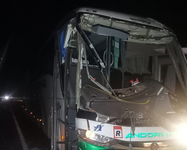 O ônibus colidiu na traseira do caminhão causando ferimento em 5 (cinco) pessoas. O Corpo de Bombeiros Militar realizou a segurança do local, bem como o transporte de 3 (três) vítimas.