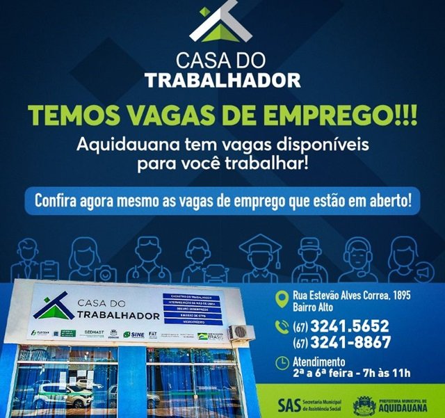 CONFIRA AS VAGAS DE EMPREGO DISPONÍVEIS EM AQUIDAUANA