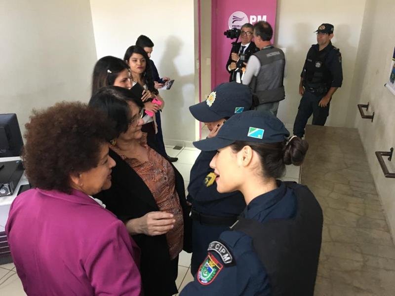 As policiais femininas que atuam no Programa explicaram para a Ministra e demais autoridades presentes, como o PROMUSE da Polícia Militar de Mato Grosso do Sul faz parte na rede de proteção às mulheres, proporcionando um atendimento mais humanizado e com maior capacitação técnica para acompanhar as mulheres vítimas de violência doméstica e familiar.