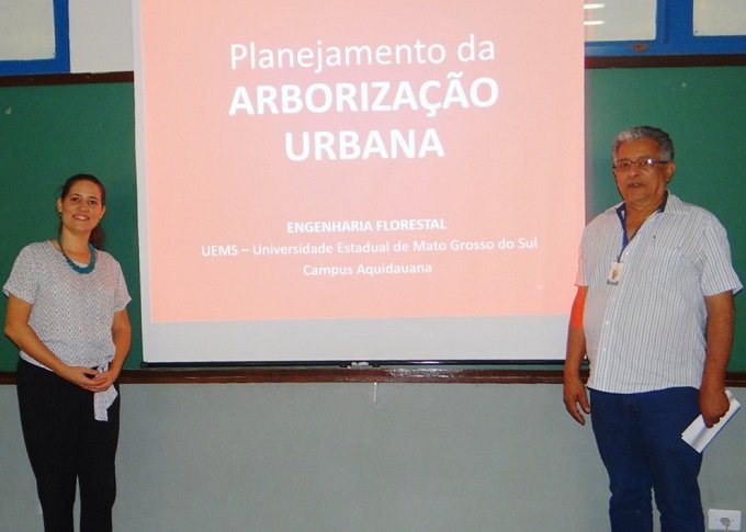Na semana passada os alunos do quarto ano do Curso de Engenharia Florestal da Universidade Estadual de Mato Grosso do Sul (UEMS), da unidade de Aquidauana, receberam a Engenheira Agrônoma e Consultora Socioambiental do Programa Reviva Campo Grande, Juliana Casadei. A palestra faz parte das atividades da Disciplina de Arborização e Paisagismo, ministrada pelo Prof. Dr. Antônio Corrêa de Oliveira Filho.