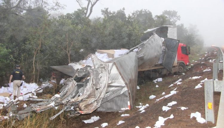 Carregamento de papel ficou espalhado na rodovia