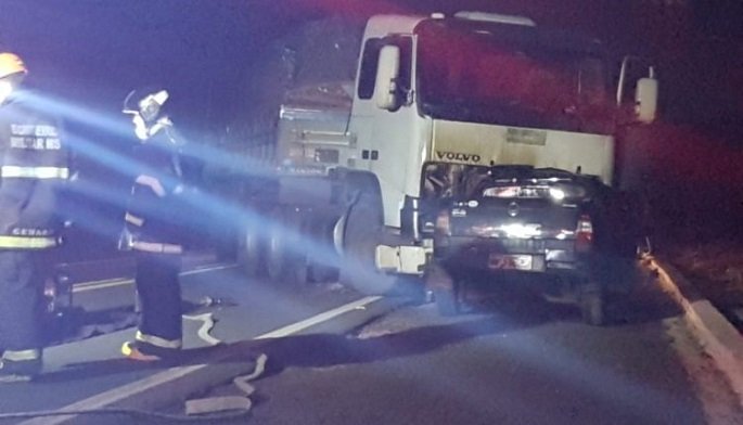 Motorista de carro morre em colisão frontal com carreta na BR-262 em Terenos