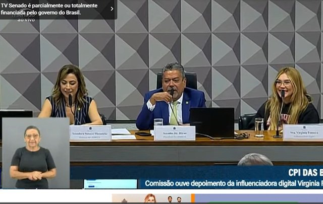 Senador grava vídeo com Virginia no meio de depoimento da CPI: ‘é para a minha filha’