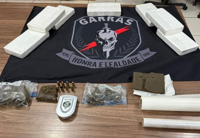 Na ação policial, foram apreendidas porções de maconha na modalidade conhecida como “ice” — uma versão mais potente e cristalizada da cannabis —, uma balança de precisão, 7 tabletes de cocaína e sete munições calibre .40. As drogas totalizaram aproximadamente 350g de maconha e mais de 7kg de cocaína.
