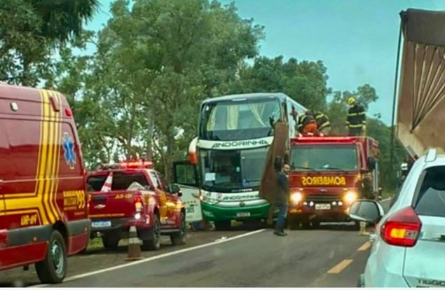O ônibus seguia de Campo Grande para Corumbá quando invadiu a pista contrária e colidiu lateralmente com o caminhão que vinha no sentido oposto.