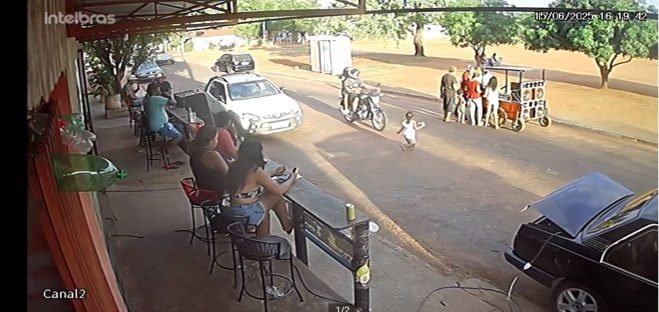 Vídeo divulgado do momento do acidente, mostra a criança correndo para atravessar a rua, quando foi atropelada pelo motociclista, que transportava uma pessoa na garupa. Com o impacto, a vítima foi arremessada e chegou a ficar desacordada.