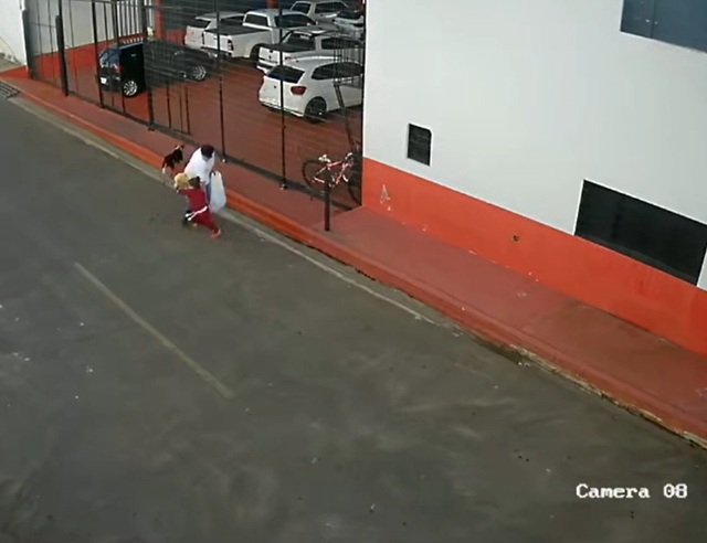A mãe da criança foi localizada e reconheceu a filha nas imagens exibidas. Ressaltamos que a criança compareceu à unidade vestindo a mesma roupa registrada no vídeo — um abrigo rosa — confirmando os fatos narrados.
