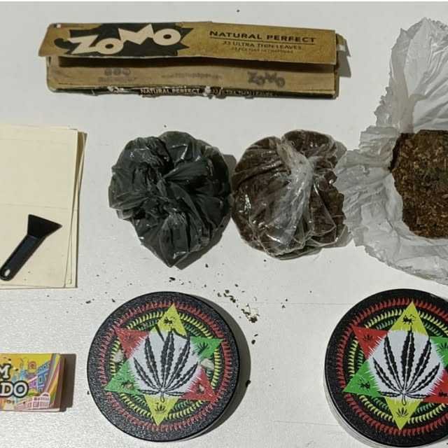 Com ele foram encontradas 03 (três) trouxinhas de maconha, 01 (dichavador), papel de seda e piteira, materiais estes utilizados para o preparo de cigarros.